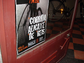A minha atenção dividia-se entre o admirar destes diferentes tipos de bicicletas e o tentar responder à simpatia das pessoas que se aglomeravam já no passeio por na loja já não haver espaço para mais ninguém. Entre aperitivos e cerveja tradicional, elogios e cumprimentos, visitas das edilidades locais e grupos que chegavam e partiam, chegou o ponto alto da festa, mas também o meu mais receado. A Alley Cat Race, ou em Português a Corrida do Alicate! Uma corrida informal, com um percurso pequeno e pontos de controle, que cada um faz na ordem que preferir, em grupo ou sozinho, pelo passeio ou pela estrada. Estava com vontade de participar, mas um pouco intimidado por tanta gente habituada a pedalar com regularidade. Não pensei mais e inscrevi-me. E ainda bem, pois apesar das desvantagens que sentia ter, a verdade é que consegui chegar ao fim sem percalços de maior e cumprir assim num tempo sofrível todo o percurso. Não cheguei em primeiro, é verdade, mas também me pareceu que esse não era o único objectivo do passeio. A ideia era também pedalar um pouco ao ritmo de cada um. E foi isso que fiz. Os primeiros 100 metros foram uma tortura com as pernas a acusarem a falta de habituação, mas um pouco depois já o Farol da Boa Nova estava à vista, chegar às Vareiras foi canja e a Igreja do Senhor de Matosinhos foi alcançada sem que sequer tivesse de ir pelo caminho mais curto. Valeu-me o arranque tardio de um dos participantes, para evitar que o meu nome ficasse num dos topos da lista :)